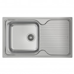 1 medence, 1 csepptálcás rozsdamentes acél mosogatótálca Anyag: AISI 304 rozsdamentes acél Méret: 860x500 mm Medencemélység: 200 mm Anyagvastagság: 0,8 mm Minimum szekrény szélesség: 500 mm Beépíthetőség: Ráépíthető Csaptelepfurat nélkül Forgatható Tartozékok: Szűrős dugó, rögzítő klippek, tömítőszalag, 3 1/2""lefolyócsomag Felület: Polírozott A mosogató...