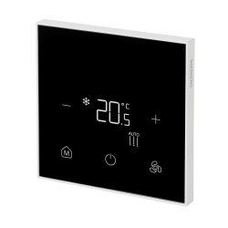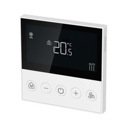 Süllyesztett szerelésű érintőképernyős BACnet és Modbus termosztát 2-/4-csöves FCU-hoz 3-fokozatú ventilátor kimenettel on/off szelep kimenettel és 2db multifunkcionális bemenettel szögletes szerelő dobozba történő beépítéshez