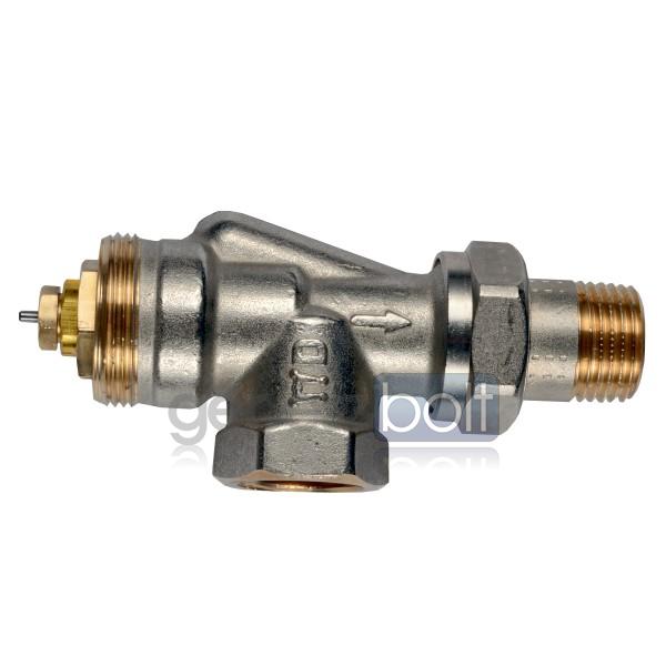 Radiátorszelepek 2-csöves fűtési rendszerekhez helyiséghőmérséklet szabályozásához. Előbeállítható áramlással. Alkalmazható közegek: Víz (VDI 2035 szerint), fagyállóval kevert víz.