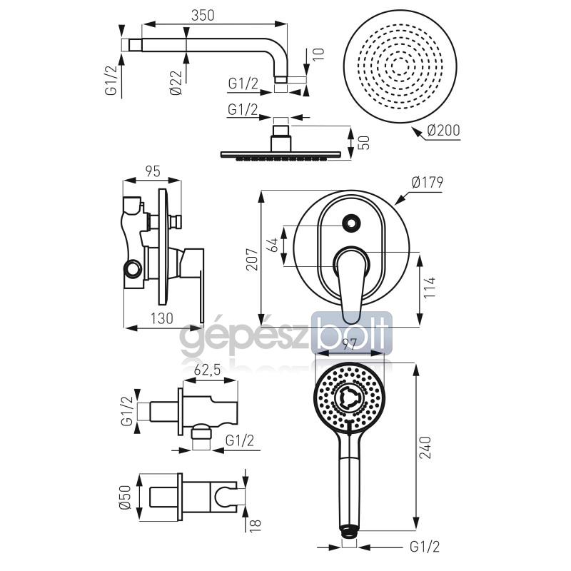 ZUHANYCSAPTELEP kétfunkciós - falsík alá épített kerámiabetétes...