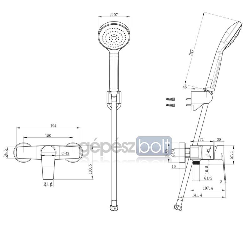 Stardust kézizuhany vízkő elleni védelemmel, Stardust fali zuhanytartó...