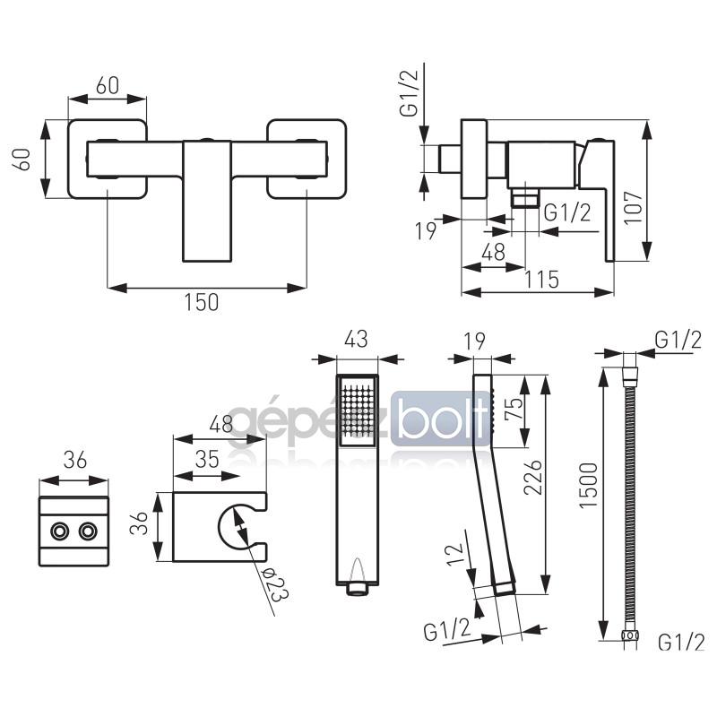 Z idom G1/2 - kiállások közötti távolság 150+/-20 mm G1/2...